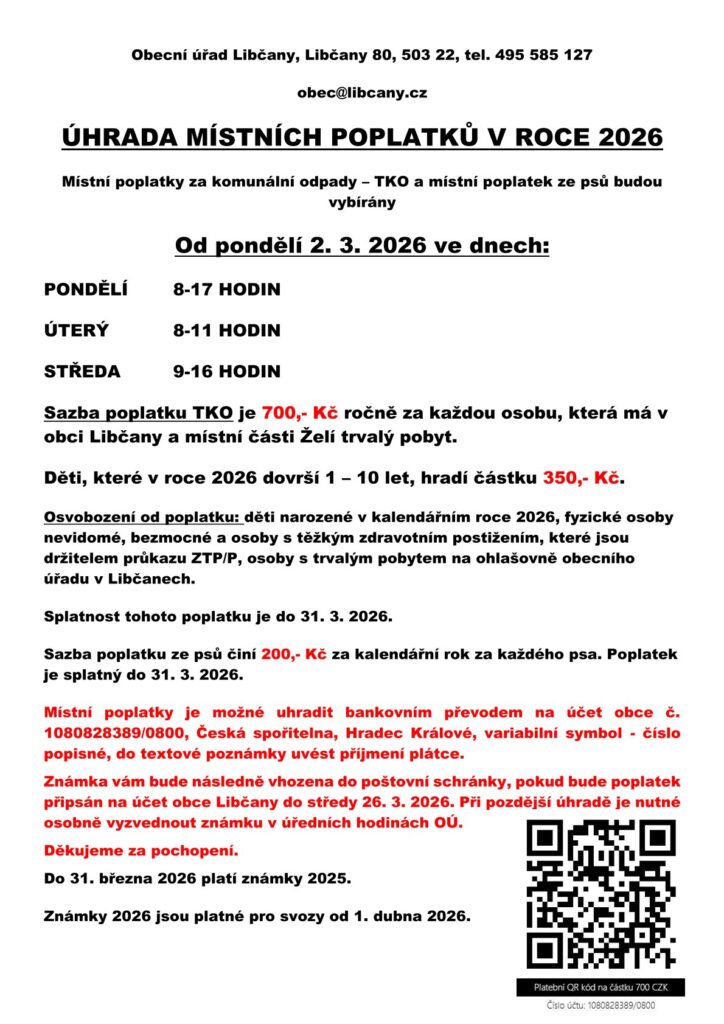 Úhrada místních poplatků na rok 2026